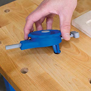 System niewidocznych połączeń Kreg to świetny sposób na przekształcenie wąskich desek w szerokie panele, blaty czy płaty. Szybkomocujący docisk poziomy może ułatwić ten proces, pomagając w utrzymaniu desek podczas pracy. Wystarczy umieścić kilka imaków w otworach stołu roboczego, następnie ułożyć deski i zamontować docisk liniowy w otworze po drugiej stronie. Jeśli deski są długie, użyj kilku docisków poziomych. Przekręć pokrętło regulacyjne, aby wywrzeć odrobinę nacisku na deski i wyrównać powierzchnie, a następnie dokręć pokrętło docisku.