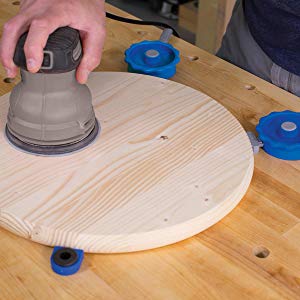 Wiele rodzajów docisków poziomych przeszkadza podczas szlifowania czy innych prac, ale nie szybkomocujący docisk liniowy Kreg. Suwak dociskowy ma grubość tylko 12 mm, więc znajduje się znacznie poniżej większości powierzchni obrabianych materiałów, takie rozwiązanie pozwala na szlifowanie elementów do krawędzi, bez ciągłego przekładania docisków.