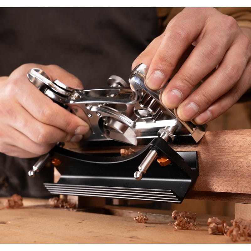 Bridge City HP-10 Foxtail łączy wyjątkowy design z imponującą wszechstronnością. Dzięki wymiennej podkładce i samonaprowadzającym ostrzom z łatwością dopasujesz go do różnych zadań. HP-10 obsługuje prowadnice i ograniczniki głębokości po obu stronach, jest więc wygodny dla osób prawo- i leworęcznych. Odkryj potencjał HP-10 i wynieś precyzję swojej pracy na nowy poziom.